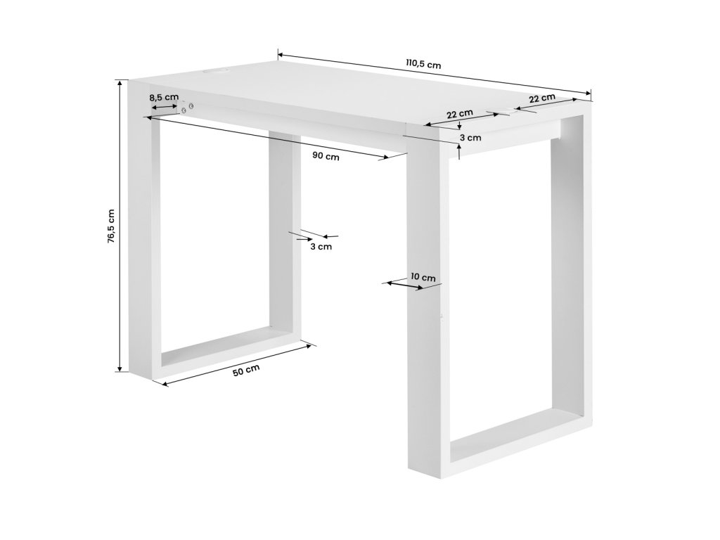 Die Arbeitsplatte ist mit integrierten Kabeldurchführungen ausgestattet. Dadurch können Geräte wie Nagelfräser, Lampen oder Staubabsaugungen einfach angeschlossen werden. Die Arbeitsfläche bleibt sauber, ordentlich und optisch ansprechend.