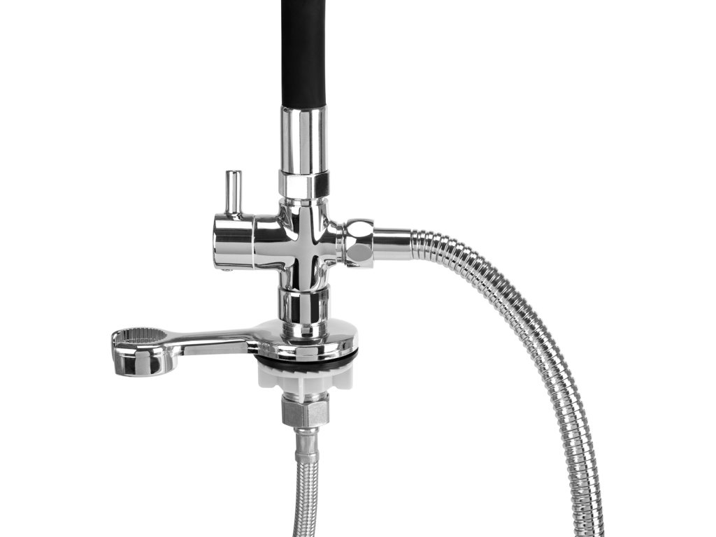 Die Regenduscharmatur mit Mischer, die für Friseurwäschen konzipiert ist, ist ein unverzichtbares Element der professionellen Salonausstattung. Sie erleichtert den bequemen Anschluss von Wasser an die Waschanlage und bietet Komfort sowohl für den Friseur als auch für den Kunden. Dank der mitgelieferten Anschlussschläuche mit Stahlgeflecht zeichnet sich die Armatur durch eine hohe Langlebigkeit und Abriebfestigkeit aus.