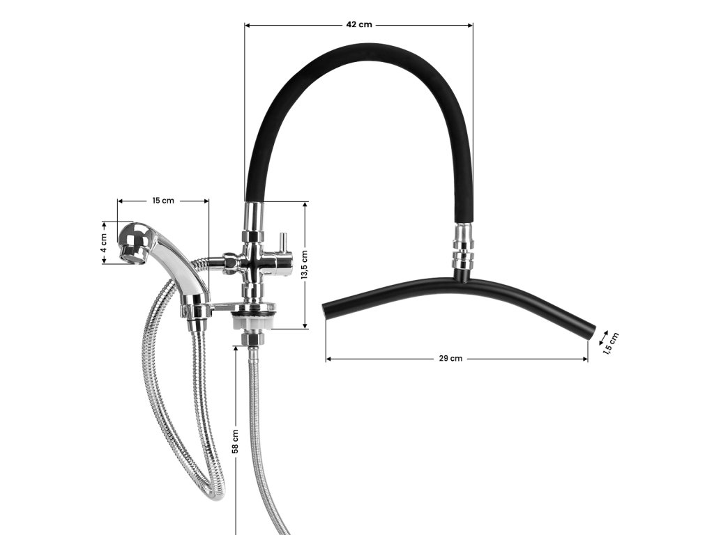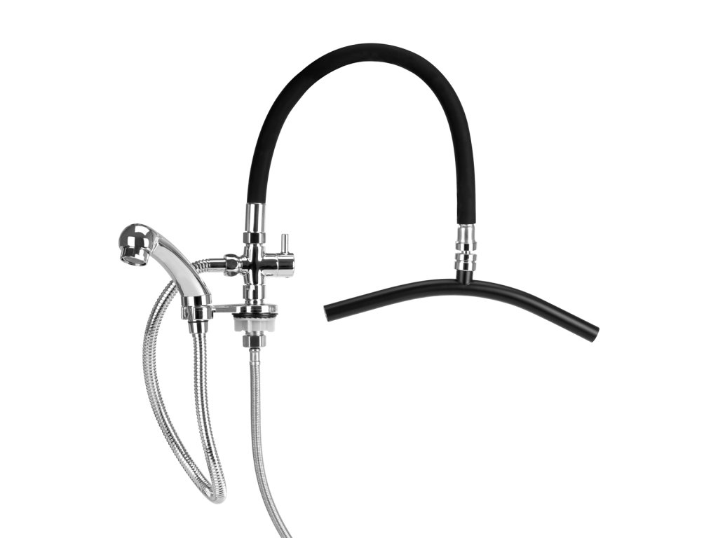 Die Regenduscharmatur von Gabbiano ist in einem eleganten Schwarz- und Chrom-Finish erhältlich und eignet sich daher ideal für moderne und stilvolle Friseursalons. Die Standardarmatur ist für die Montage an der Schüssel des Friseurwaschbeckens vorgesehen und mit den meisten auf dem Markt erhältlichen Modellen kompatibel.