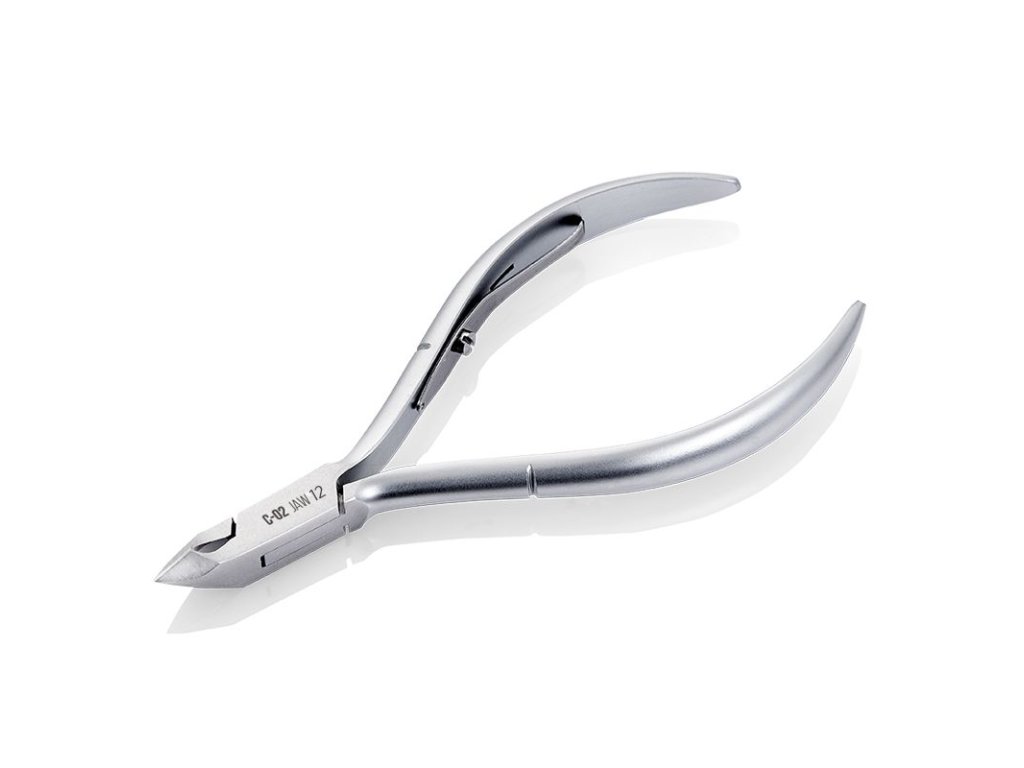 Professionelle Nagelhautzange NGHIA EXPORT C-02 (Größe 12)Professionelle Einfeder-Nagelhautzange aus Kobaltstahl für präzises Entfernen der Nagelhaut. Erhältlich in Größen: 12 (4mm), 14 (5mm). Dank des Backenverbindungsverfahrens Box Joint (das den Materialverschleiß und die Möglichkeit des Spieles im Vergleich zu anderen Verbindungsmethoden minimiert), sorgt die Zange für eine komfortable Anwendung über einen langen Zeitraum.