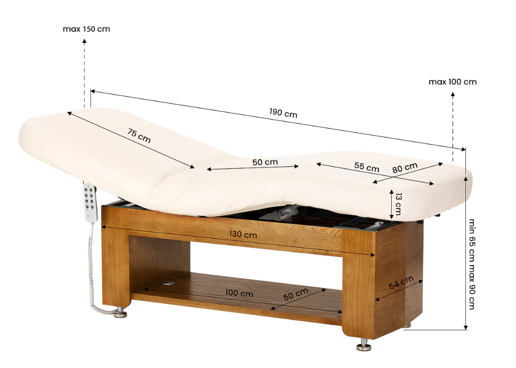 Dank der durchdachten Konstruktion eignet sich die Liege für ein breites Spektrum an Anwendungen – von klassischen kosmetischen Behandlungen über Massagen bis hin zu entspannenden SPA-Ritualen.