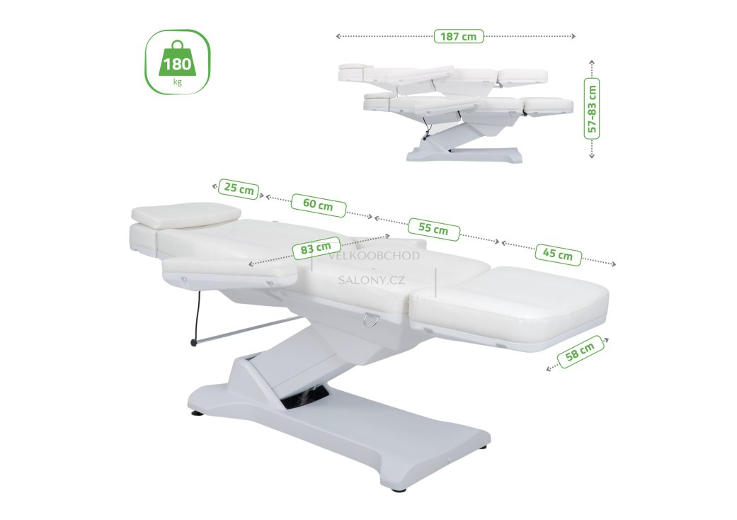 Professioneller elektrischer Kosmetikstuhl 4in1 mit Fernbedienung, 180 kg Tragkraft und Premium-Kunstleder in Weiß ist eine hochwertige Ausstattung, die für den intensiven täglichen Betrieb in Kosmetiksalons, SPA-Zentren, Massagestudios, Podologie-Praxen, Physiotherapie-Praxen sowie Tattoo- und Piercingstudios entwickelt wurde. Dieser weiße elektrische Stuhl vereint modernes Design, robuste Konstruktion und fortschrittliche Verstellmöglichkeiten in 4 Ebenen, um maximalen Komfort sowohl für den Kunden als auch für den behandelnden Fachmann zu gewährleisten.