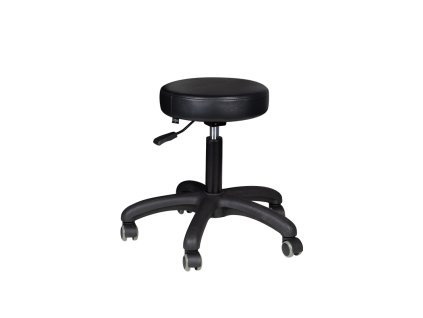 Kompakter, schwarzer Kosmetikhocker ohne Rückenlehne, höhenverstellbar mit Gummirädern – ideal für Kosmetikstudios und Schönheitssalons.