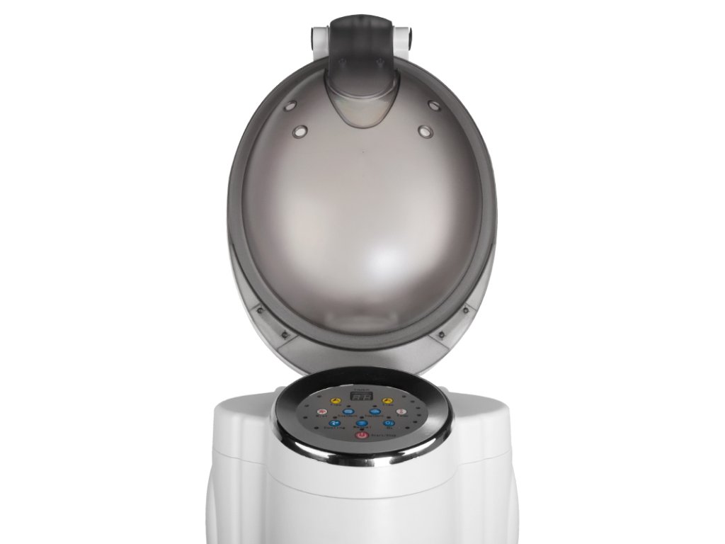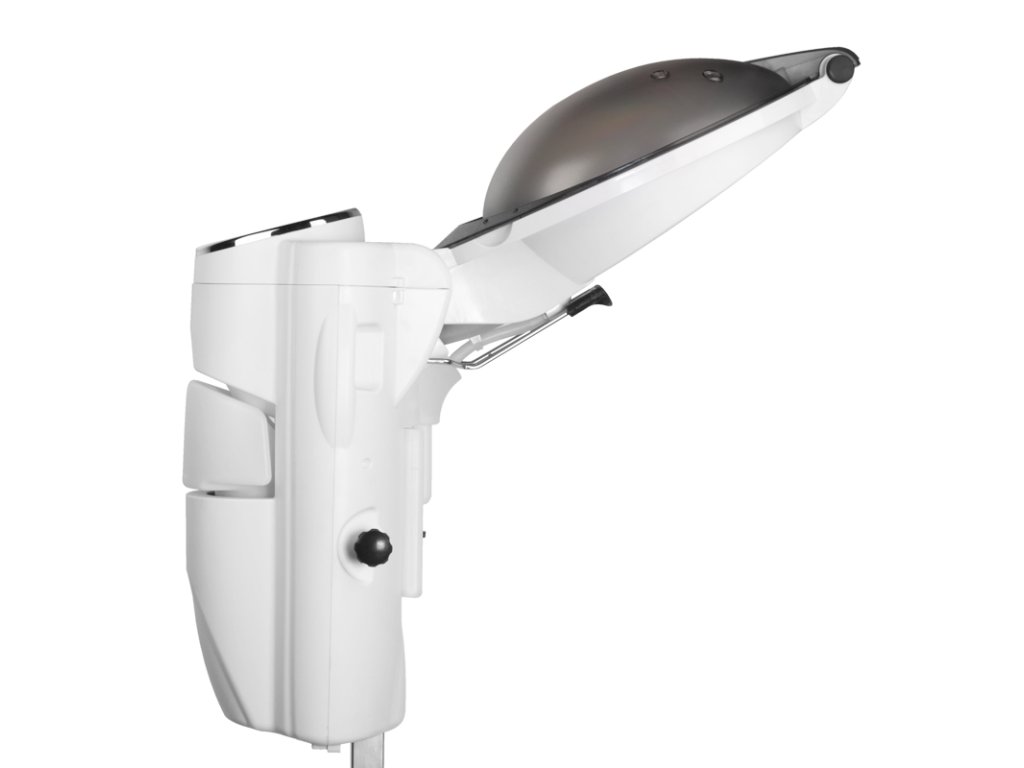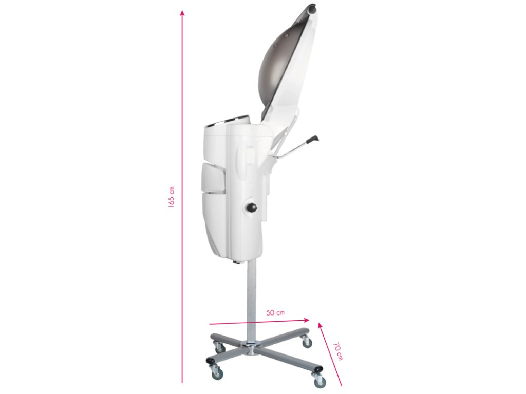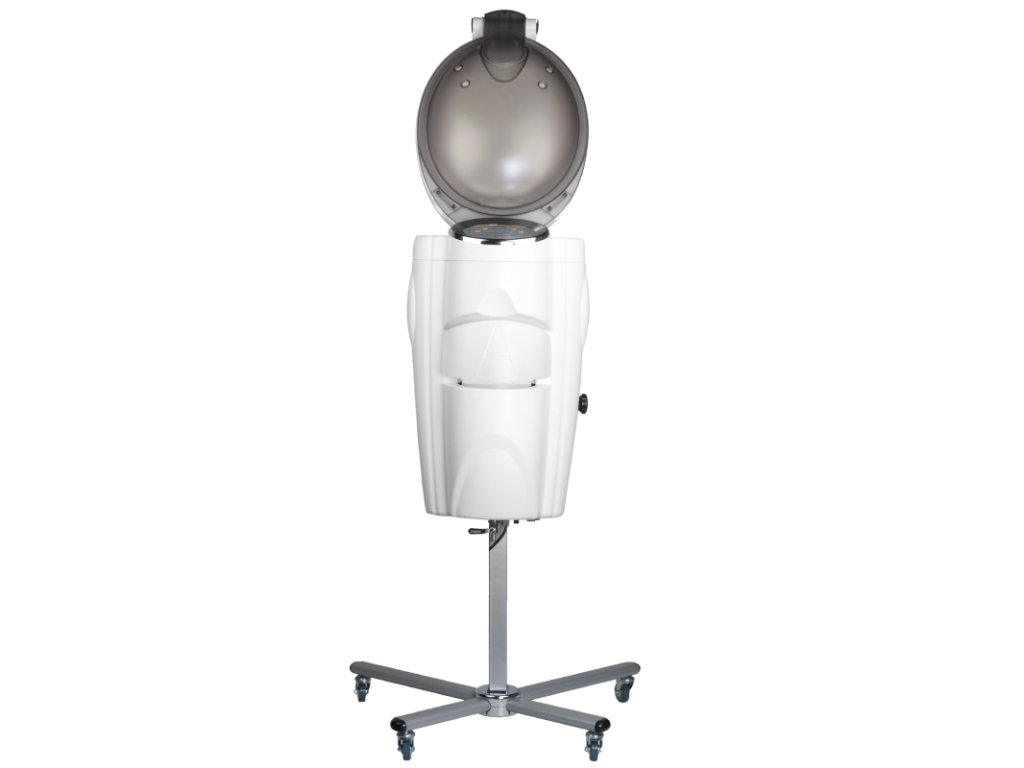 Eine Saunahaube mit höhenverstellbarem Stativ von Gabbiano mit aktivem Ozon.Dies ist ein innovatives Gerät zum tiefen Haarwiederaufbau.