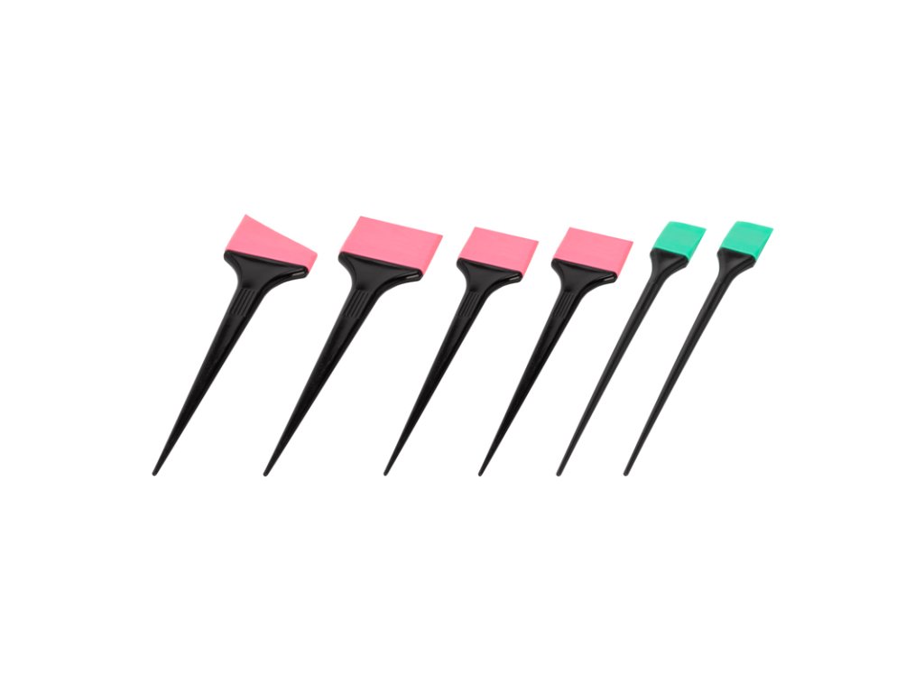 Ein professionelles Set von Silikonpinseln zum Auftragen von Haarfärbemittel. Es beinhaltet 6 Pinsel mit unterschiedlichen Spitzen. Die Pinsel sorgen für ein präzises Auftragen des Haarfärbemittels und reichen dabei so nah wie möglich an die Kopfhaut heran. Sie sind aus hochwertigem Silikon gefertigt.