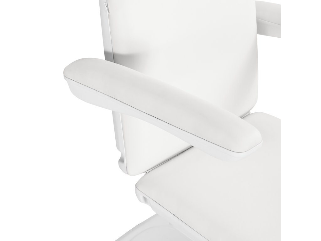 Die Kopfstütze, die um 20 cm verlängert werden kann, ermöglicht es Ihnen, den Stuhl an die Körpergröße des Benutzers anzupassen und so den Kopf während der Behandlungen stabil zu stützen. Bewegliche Armlehnen, die um 180° gedreht werden können, erleichtern die Platzaufnahme auf dem Sitz und ermöglichen einen bequemen Zugang für die behandelnde Person. Sie können bei Bedarf auch leicht entfernt werden. Die genutzten Annehmlichkeiten erhöhen den Bedienkomfort und unterstützen die ergonomische Arbeitsorganisation.