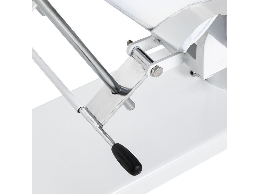 Mit Hilfe spezieller Hebel ist es möglich, die Winkel, in denen sich Fußstütze und Rückenlehne befinden, stufenlos einzustellen. Dies ermöglicht eine optimale Anpassung der Einstellungen an die individuellen Bedürfnisse, für eine korrekte und bequeme Behandlung und einen Bedienkomfort. Der Stuhl kann auf die Position einer Couch heruntergeklappt werden, was seine Funktionalität sowohl bei Gesichts- als auch bei Körperbehandlungen deutlich erhöht.