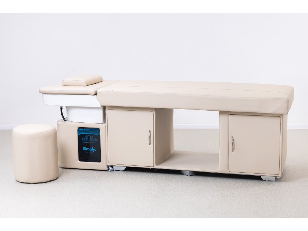 Simply Beauty Head Spa Liege mit Keramik-Waschbecken & Doppel-Schrank – Beige