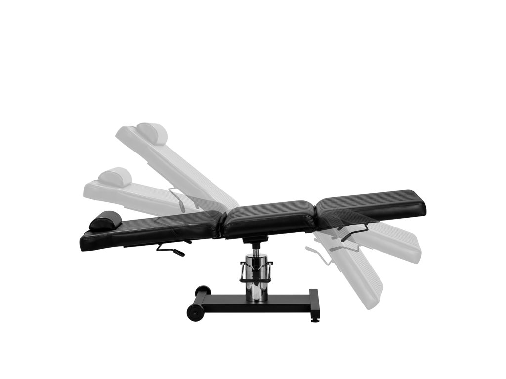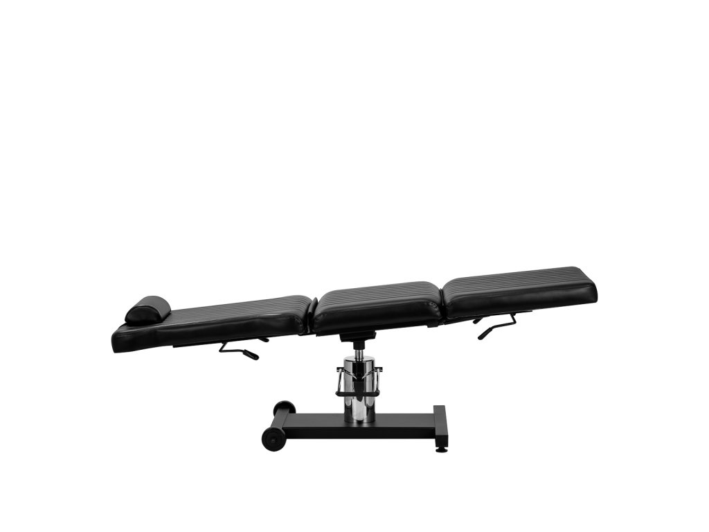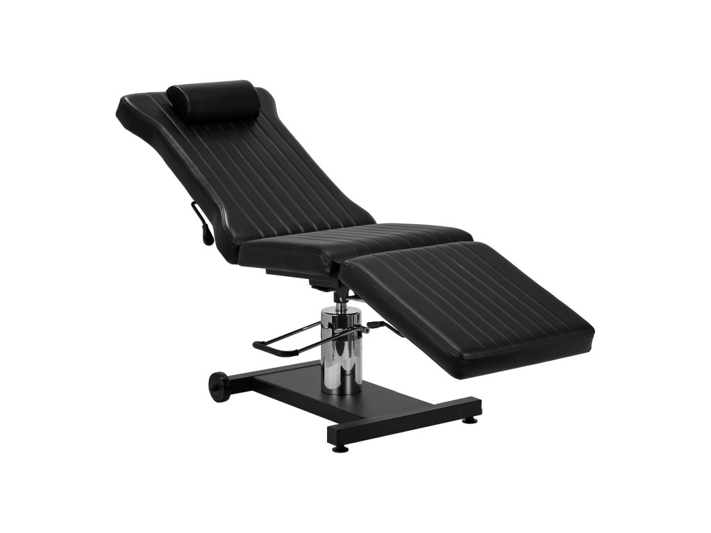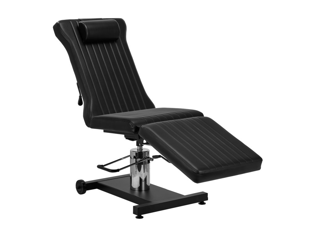 Der minimalistische Look und die klassischen Farben machen den Stuhl perfekt für jedes Tattoo-Studio und machen die Dienstleistungen viel effektiver. Es hilft sowohl der tätowierten Person als auch dem Künstler, eine bequeme Position einzunehmen. Die verformungsbeständige Schaumstofffüllung, der griffige Kunstlederbezug in Schwarztönen und der stabile Metallrahmen sorgen für Langlebigkeit und Reinigungsfreundlichkeit. Ästhetische Nähte verleihen ihm einen einzigartigen Charakter. Räder, die in einem Teil des Sockels angebracht sind, beeinflussen die Beweglichkeit des Möbels und erleichtern das Bewegen.