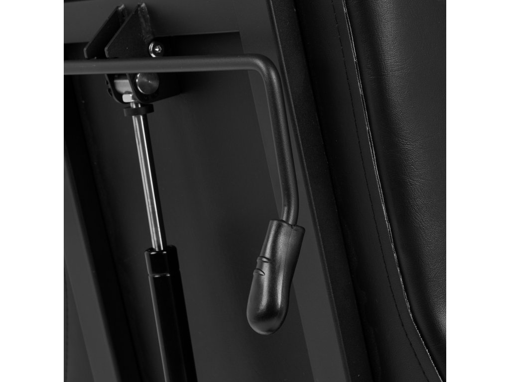 Der Stuhl verfügt über spezielle Mechanismen, die es ermöglichen, ihn an die Bedürfnisse und Besonderheiten der Tätowierindustrie anzupassen. Die Winkel der Rückenlehne sind manuell verstellbar und werden mit einem Hebel arretiert. Auch die Neigung der Fußstütze lässt sich verstellen und arretieren, so dass der Stuhl in die Daybed-Position gestellt werden kann. Der Vollrotationsmechanismus wirkt sich erheblich auf die Effizienz und den Arbeitskomfort aus. All diese Funktionen bieten einen erheblichen Bedienkomfort.