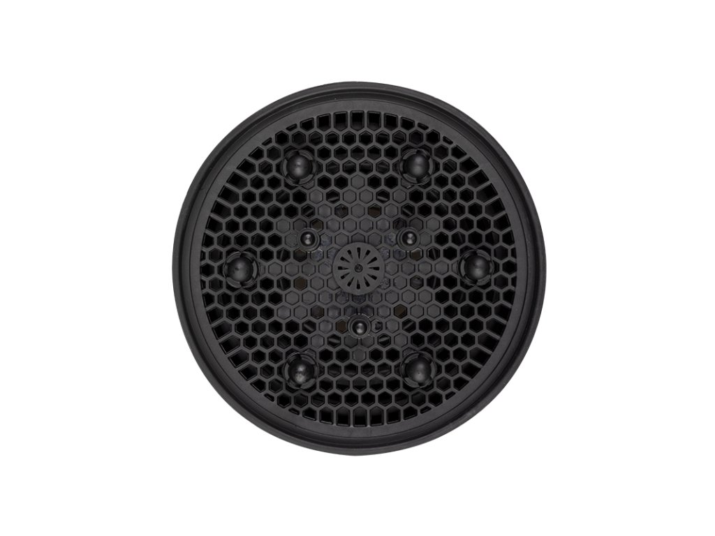 Ein flexibler Friseurdiffusor aus hochwertigem Silikon. Er verteilt die Wärme gleichmäßig, was das Styling beschleunigt und das Kreieren weicher Locken oder Wellen erleichtert. Besonders leichtes, platzsparendes Design (lässt sich zu einer flachen Form zusammenklappen). Passt zu den meisten professionellen Haartrocknern mit verlängertem Design, bei denen der Öffnungsdurchmesser zwischen 6,3 cm und 8,5 cm variiert.