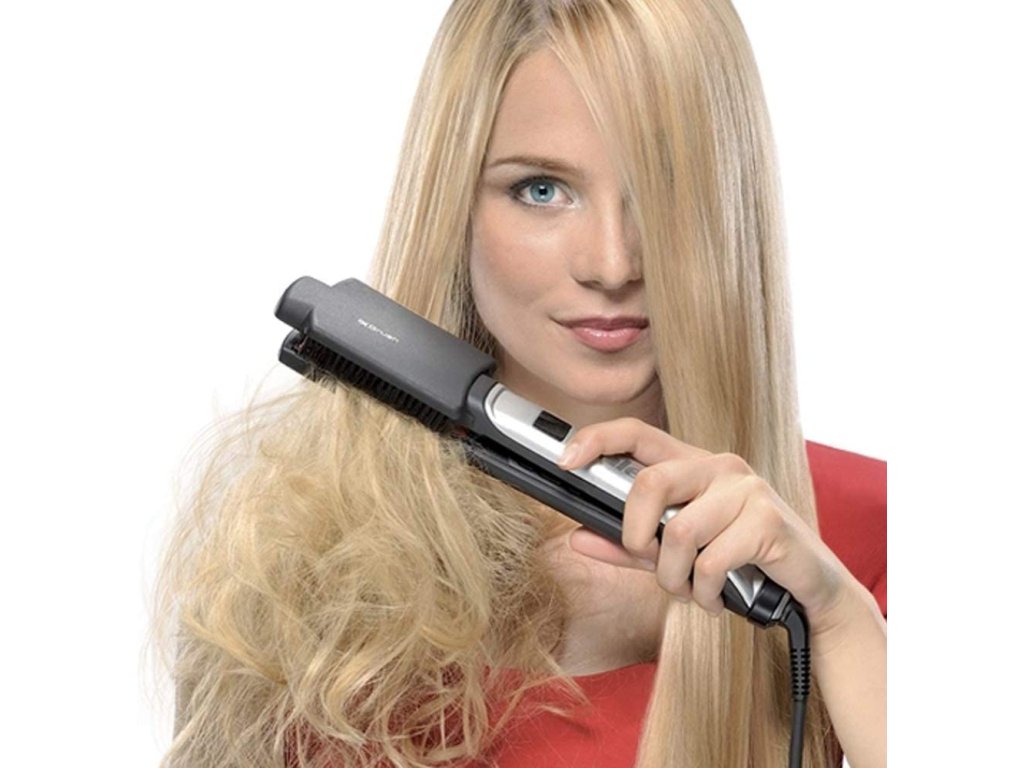 Professioneller Haarglätter mit Ionisation, LCD-Anzeige und einer speziellen X-BRUSH-Bürste.