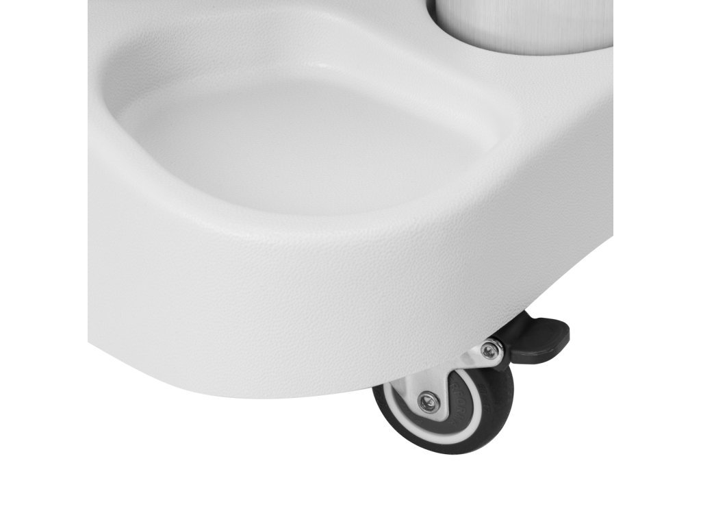 Der Azzurro-Wagen zeichnet sich durch eine stabile Kunststoffkonstruktion aus, die Haltbarkeit und Stabilität garantiert. Gummiräder mit Feststellfunktion ermöglichen ein einfaches Manövrieren, was den Wagen besonders funktional und praktisch macht. Die Reinigung ist besonders einfach, da die Oberfläche schmutzabweisend ist. Der Wagen ist mit den meisten auf dem Markt erhältlichen Fußbädern kompatibel.