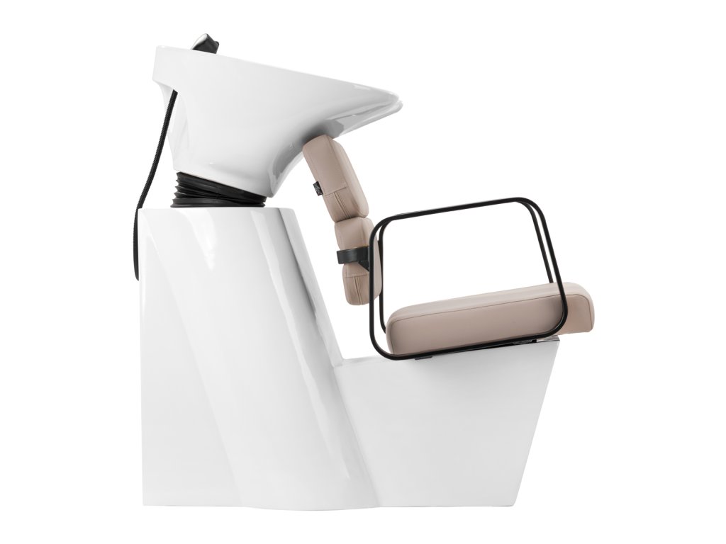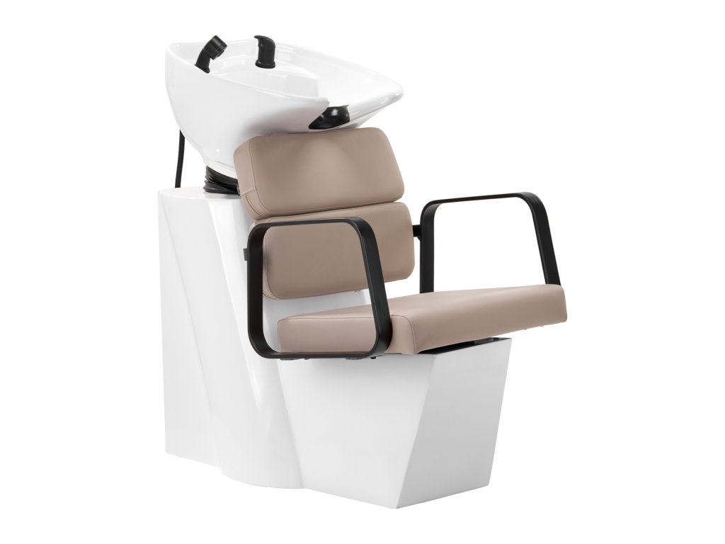 Der Friseur-Waschsessel Porto-BM Beige von Gabbiano kombiniert hochwertiges Design mit hoher Funktionalität. Die verstellbare Waschtischschale aus weißer Keramik verhindert Wasserspritzer und passt sich dank verstellbarem Neigungswinkel optimal den Bedürfnissen des Kunden an. Die großzügige Polsterung aus strapazierfähigem Kunstleder in Beigetönen sorgt für erstklassigen Sitzkomfort und Lendenwirbelstütze. Armlehnen aus schwarzem Metall mit geometrischer Form unterstützen eine ergonomische Positionierung der Schultern. Ausgestattet mit Mischerbatterie, Duschkopf und Ablageplatz für den Hörer ermöglicht dieser Waschsessel effizientes und komfortables Arbeiten im Friseursalon. Das clevere Design mit offenem Spalt zwischen Rückenlehne und Sitz erleichtert die Reinigung und garantiert hohe Hygiene. Ein Möbelstück, das stilvolles Ambiente und Funktionalität vereint.